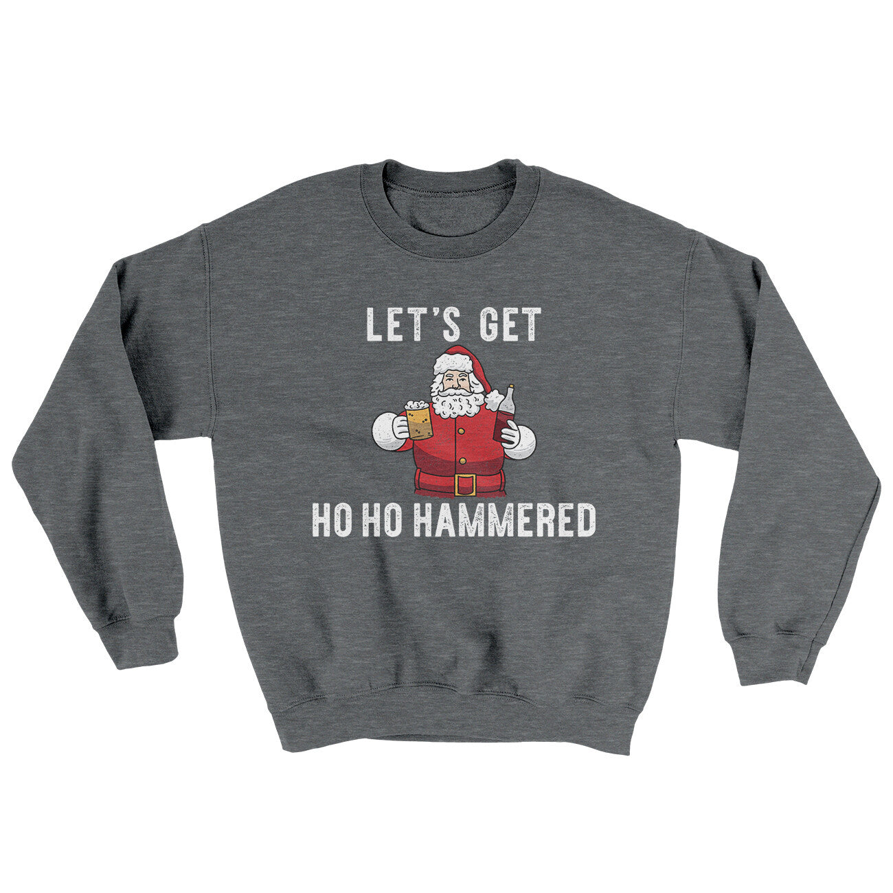 Santa is here to party.This soft and durable crewneck sweatshirt features a loose fit with a 50/50 cotton/poly blend and a tear-away label. Double needle stitched cuffs and waistband with an athletic rib knit collar lends itself to daily wear at an affordable price.